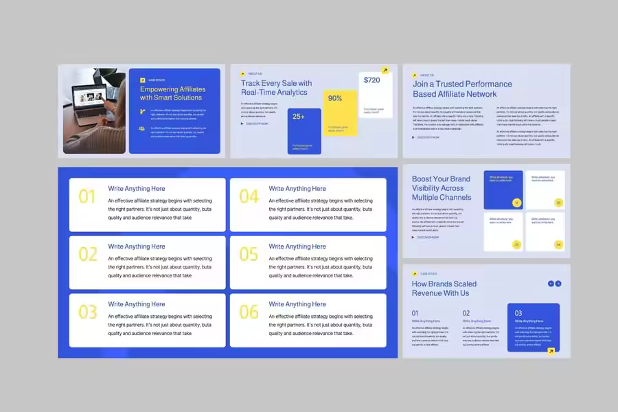 **联盟营销主题演讲模板** 旨在打造令人印象深刻的演示文稿,每张幻灯片均可自定义且易于使用,助您快速呈现精彩纷呈、令人印象深刻的演示文稿。无论是商业、教育还是创意项目,我们的模板都能确保您的内容风格鲜明、清晰易懂。