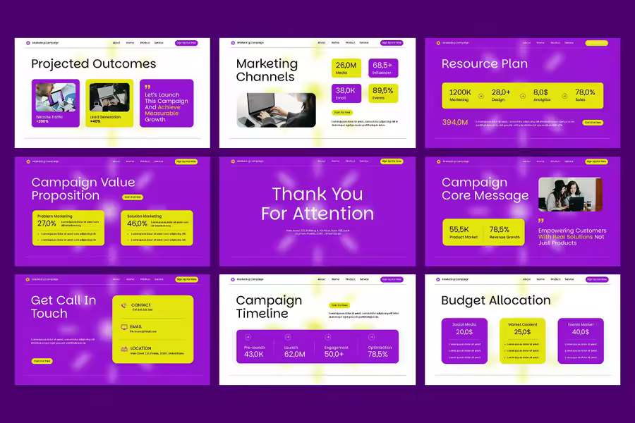 使用营销活动 PowerPoint 演示文稿模板,启动您的下一个营销活动,使其更具影响力。此模板专为营销团队、数字代理机构、品牌经理和商务人士设计,可帮助您以专业且引人入胜的方式展示营销策略、营销活动目标和绩效成果。模板包含完全可自定义的幻灯片,涵盖成功营销活动的所有关键要素:营销活动目标、目标受众、营销渠道、预算分配、关键绩效指标 (KPI)、绩效跟踪、竞争对手分析和投资回报率 (ROI) 报告。现代而富有创意的设计确保您的信息脱颖而出,同时保持简洁专业的界面。借助可编辑的图表、信息图、时间线和模型,您可以轻松地将复杂的数据转换为视觉效果,从而吸引注意力并推动行动。无论您是在准备营销宣传、活动提案还是成果演示,此模板都是传达您的愿景并赢得客户信任的终极工具。它包含专业设计的幻灯片,可用于展示您的公司概况、价值主张、问题和解决方案分析、目标市场、商业模式、竞争格局、财务预测以及团队介绍。该模板拥有现代化的布局、引人入胜的视觉图形和可编辑的图表,增强了叙事和数据可视化的效果。该模板可完全自定义,适合任何行业,助您打造引人入胜、成果显著的宣传方案。适用于营销活动 PowerPoint、营销策略演示文稿、数字营销 PPT 模板、广告活动幻灯片、活动提案 PowerPoint、社交媒体营销演示文稿、活动策划 PPT、商业营销幻灯片、创意营销 PPT、活动成果演示文稿和品牌战略 PowerPoint。