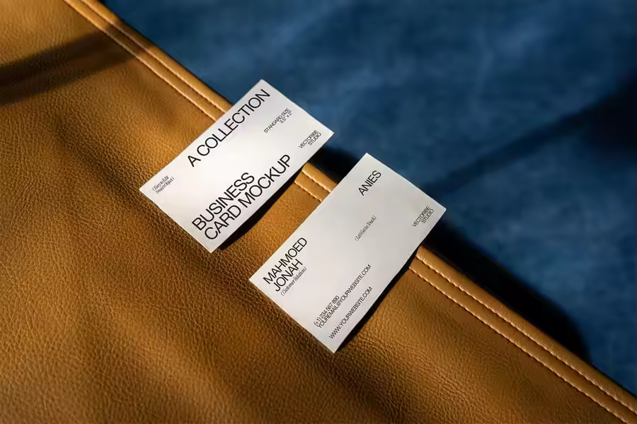 用这款逼真的模型,以简洁专业的方式展示您的名片设计。非常适合展示品牌形象、个人身份或客户项目。智能对象和高分辨率细节,易于定制。