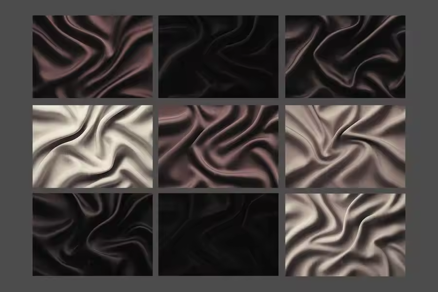 一组时尚复古的织物纹理,展现出微妙的褶皱和流畅的织物表面。这些背景拥有柔和的哑光效果和隽永的美感,为创意项目增添了精致感和深度。非常适合品牌、包装、海报或任何追求复古优雅织物质感的设计。