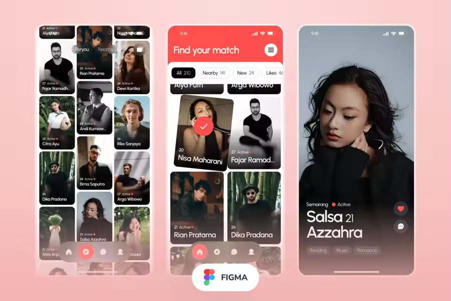 Menira 是一款简洁友好的约会应用 UI 套件,专为移动平台设计。它拥有精心设计的布局、柔和的视觉效果和直观的交互,非常适合打造基于滑动的体验、个人资料发现或消息传递流程。