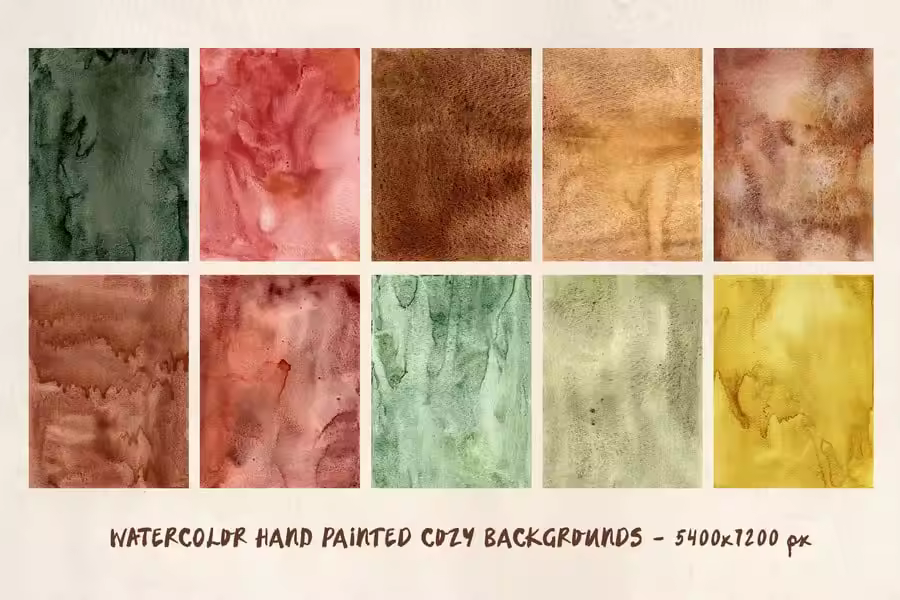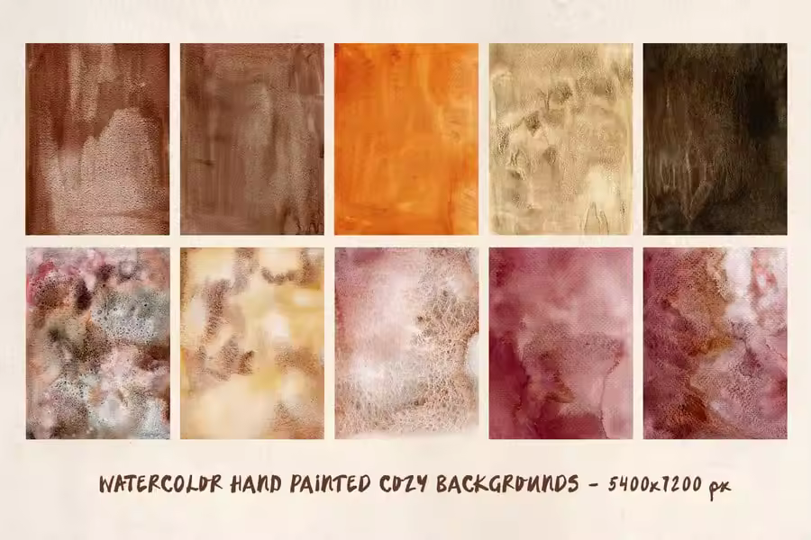 20 张手绘水彩抽象秋季背景的舒适集合,JPG 格式(5400×7200 像素,300 dpi),专为秋季和冬季项目创建。