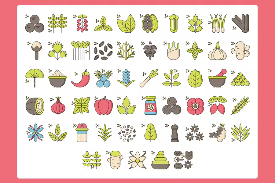 这些香草和香料矢量图标清新、现代,最重要的是,易于定制。因此,您可以调整它们,使它们完美地融入您正在进行的任何项目。