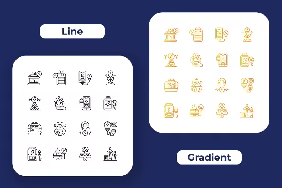 一个现代且功能多样的图标包,专为网站、移动应用、书籍、社交媒体、信息图表、传单、印刷品、横幅、海报等设计。包含 64 个图标,涵盖 4 种风格:**线条、实心、双色调和渐变**。