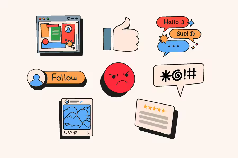 这套图标集包含社交媒体互动的基本图标,包括点赞、关注、评论和留言。专为内容创作和营销视觉效果而设计。