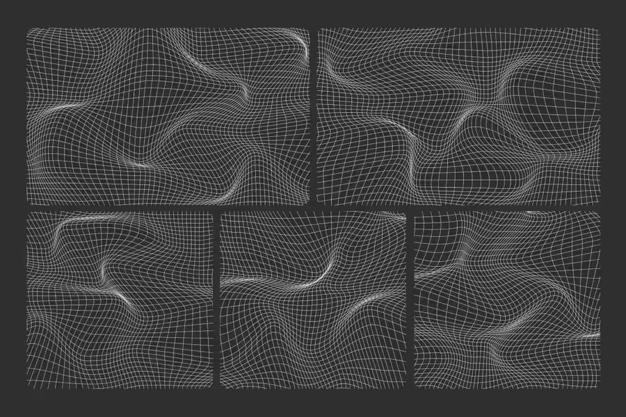 这款抽象波浪网格背景包包含五款独特的高品质图形背景,每款背景都以深色背景为背景,展现流畅的白色网格线条。扭曲的几何图案营造出流畅的波浪效果,将秩序与混乱融合成现代的视觉韵律。这些设计采用极简主义的单色风格,凸显了未来主义美学和动态的空间错觉。其抽象而结构化的外观使其用途广泛,适用于海报、品牌推广、数字艺术作品、编辑版面以及大胆而现代的设计手法的创意项目。