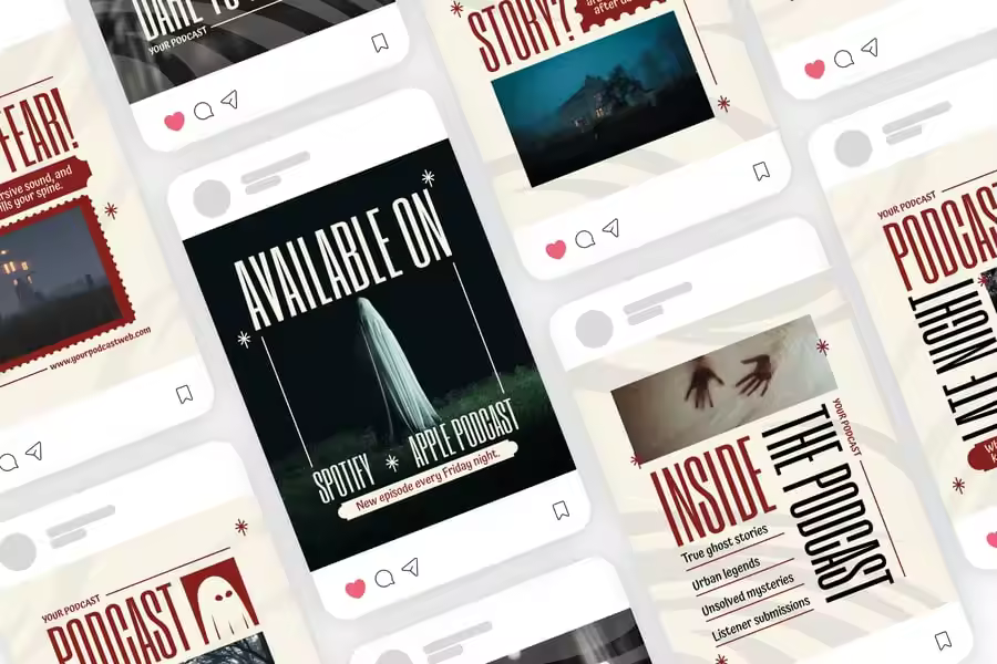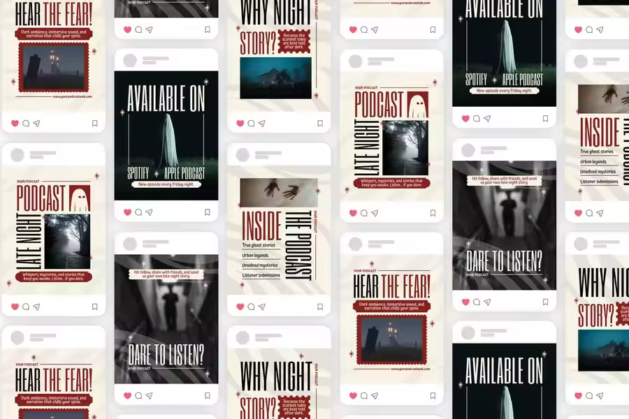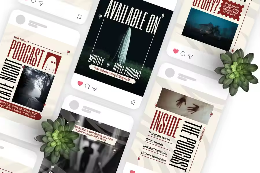 我们为您设计了高度精细的界面设计,当然还有《深夜播客》的 Instagram 帖子。我们精心打造的设计可根据您的品牌或业务进行个性化定制。无论您展示的是哪个行业、服务或产品,我们都能为您打造理想的 Instagram 帖子。