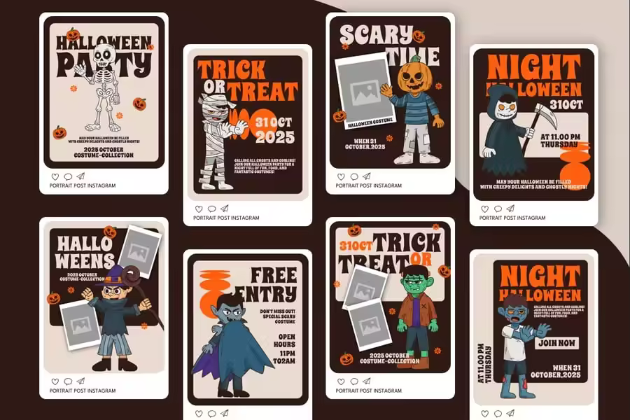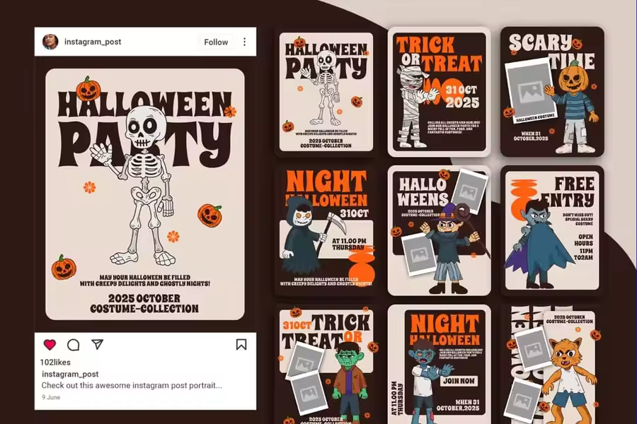 隆重推出**Skresfor – 万圣节派对 Instagram 帖子肖像模板**
