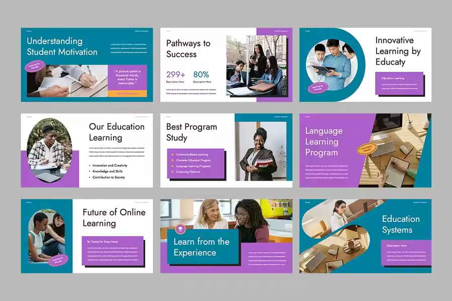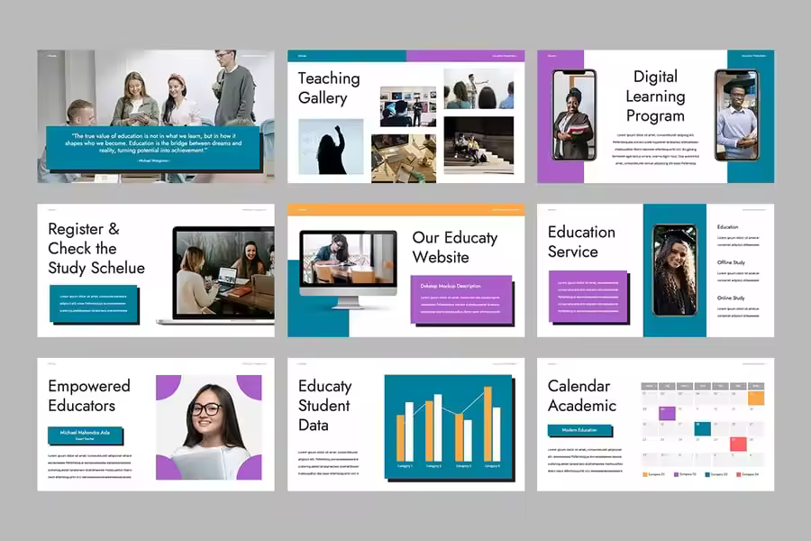 **教育演示** 专业的多用途演示模板。内置 16:9 (高清) 屏幕。简洁、现代、易于编辑。非常适合您的企业、学校、学院、教育和推广。
