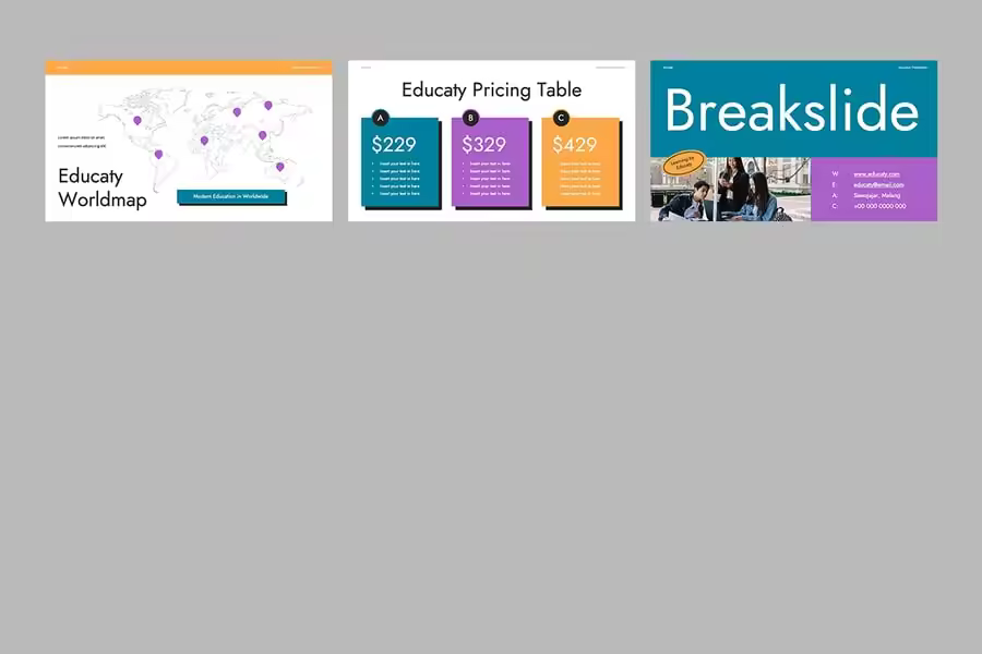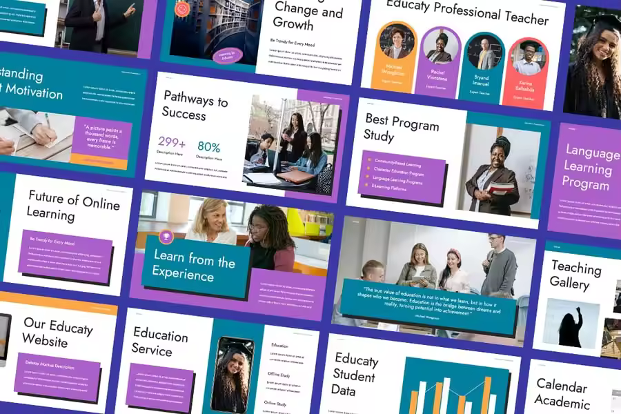 **教育演示** 专业的多用途演示模板。内置 16:9 (高清) 屏幕。简洁、现代、易于编辑。非常适合您的企业、学校、学院、教育和推广。