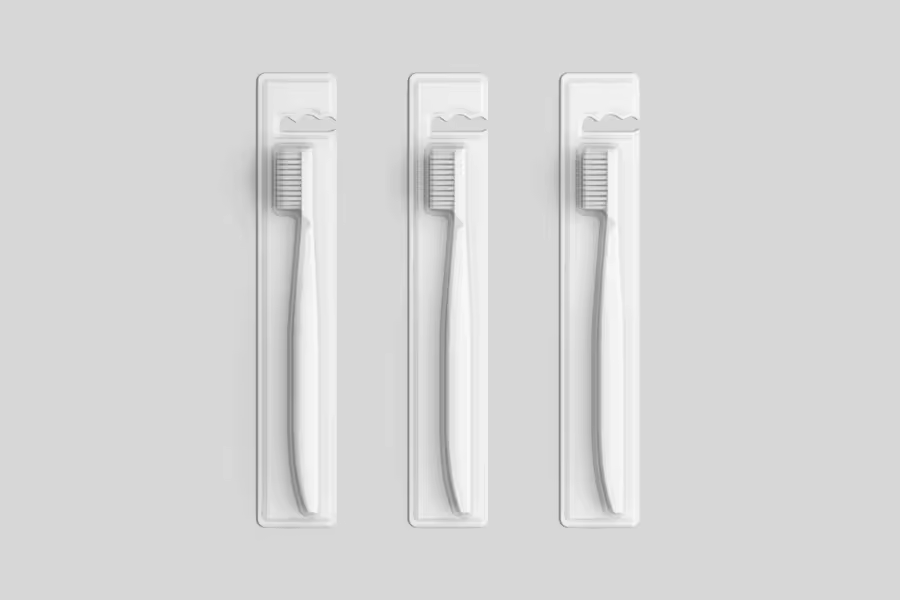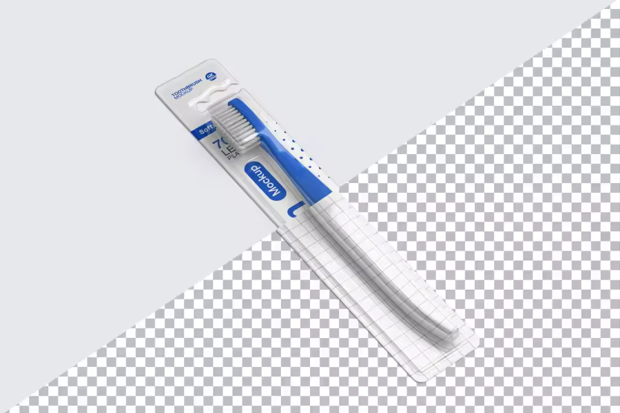 这款**牙刷包装模型**套装旨在帮助您以专业逼真的外观展示口腔护理产品。它包含两个独立的场景,分别展示泡罩式包装内的牙刷,是牙科护理品牌推广、产品展示和电商预览的理想之选。凭借其高分辨率细节,您的设计将清晰锐利,随时可用于市场展示。