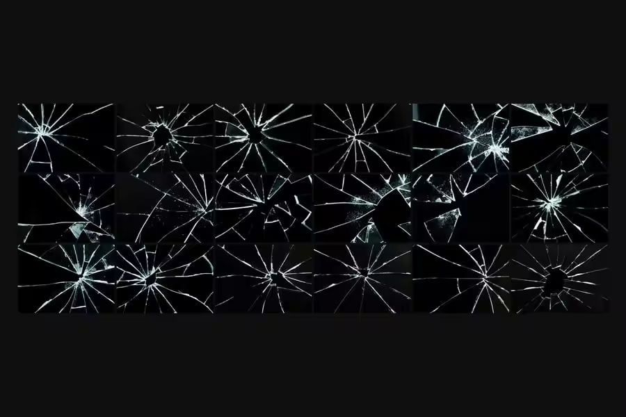 这款碎玻璃纹理包包含一系列高分辨率碎玻璃叠加层,旨在为您的项目增添戏剧性逼真的破碎效果。非常适合用于海报、专辑封面、恐怖主题或电影画面。这些纹理细节清晰,适用于印刷和数字用途。