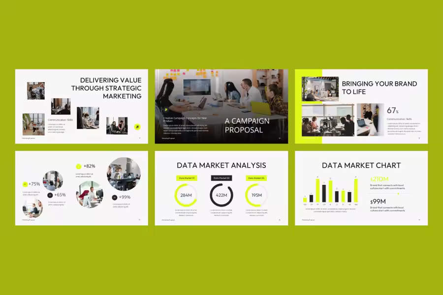 此演示模板适用于营销提案、商业战略演示、销售演示、数字营销活动、初创企业推介和企业项目提案。