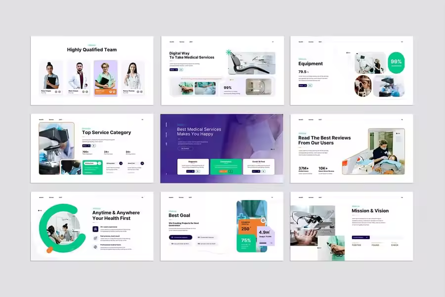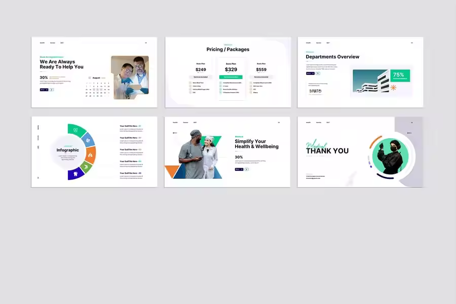 医疗健康演示的最佳模板,简约、优雅且专业,让您的演示更吸引观众。我们为您推荐快递运输和物流,以全面的品牌触点陪伴您业务发展的每个阶段,从启动新项目、在竞争对手中建立知名度,到最终以改进的目标主张收尾。这些模板包含 24 张主幻灯片和各种可编辑的信息图、配色方案等。