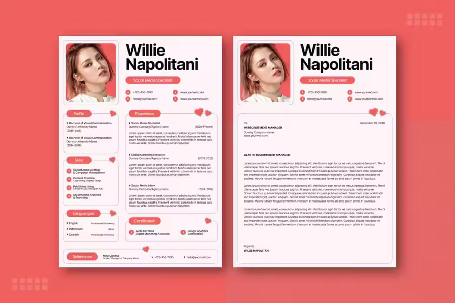 **简历模板** 简洁专业的简历模板,旨在有效展示您的技能、经验和成就。这款模板拥有现代化的布局、结构合理的版块和易于编辑的格式,可帮助您打造一份出类拔萃的简历,给人留下深刻的第一印象。非常适合求职者、专业人士和应届毕业生。