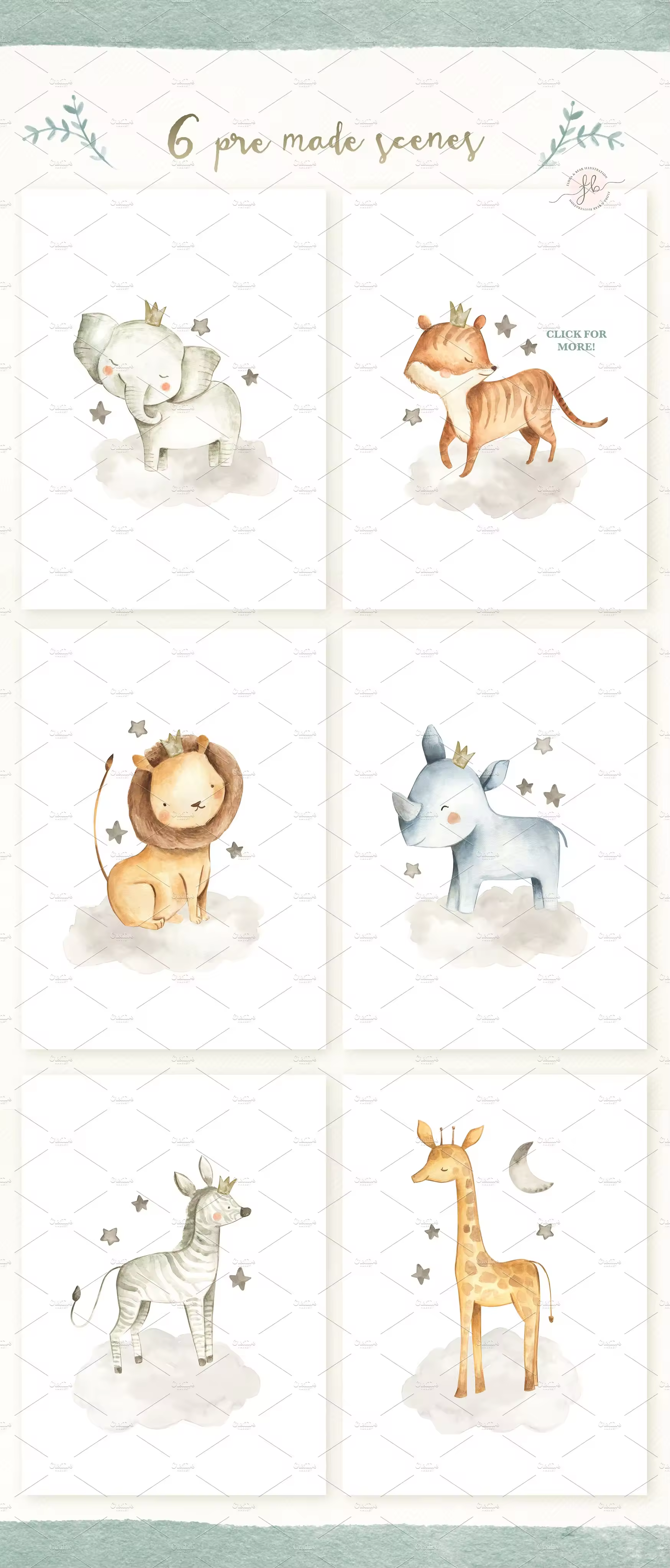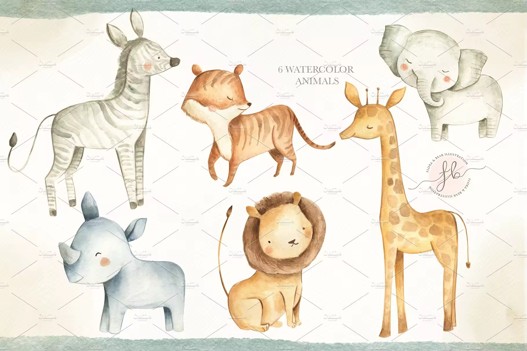 - 6只动物,大象,长颈鹿,河马,狮子,老虎和斑马(1400 px~2400 px)