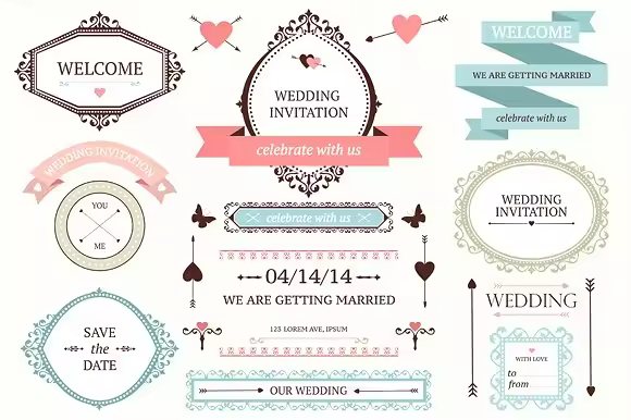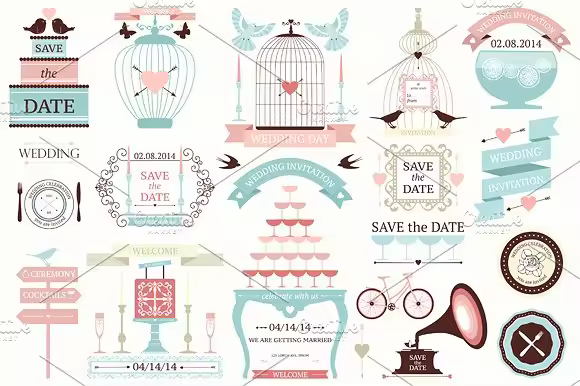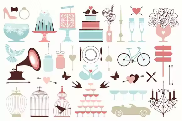 婚礼装饰设计矢量元素 Wedding Icons Collection