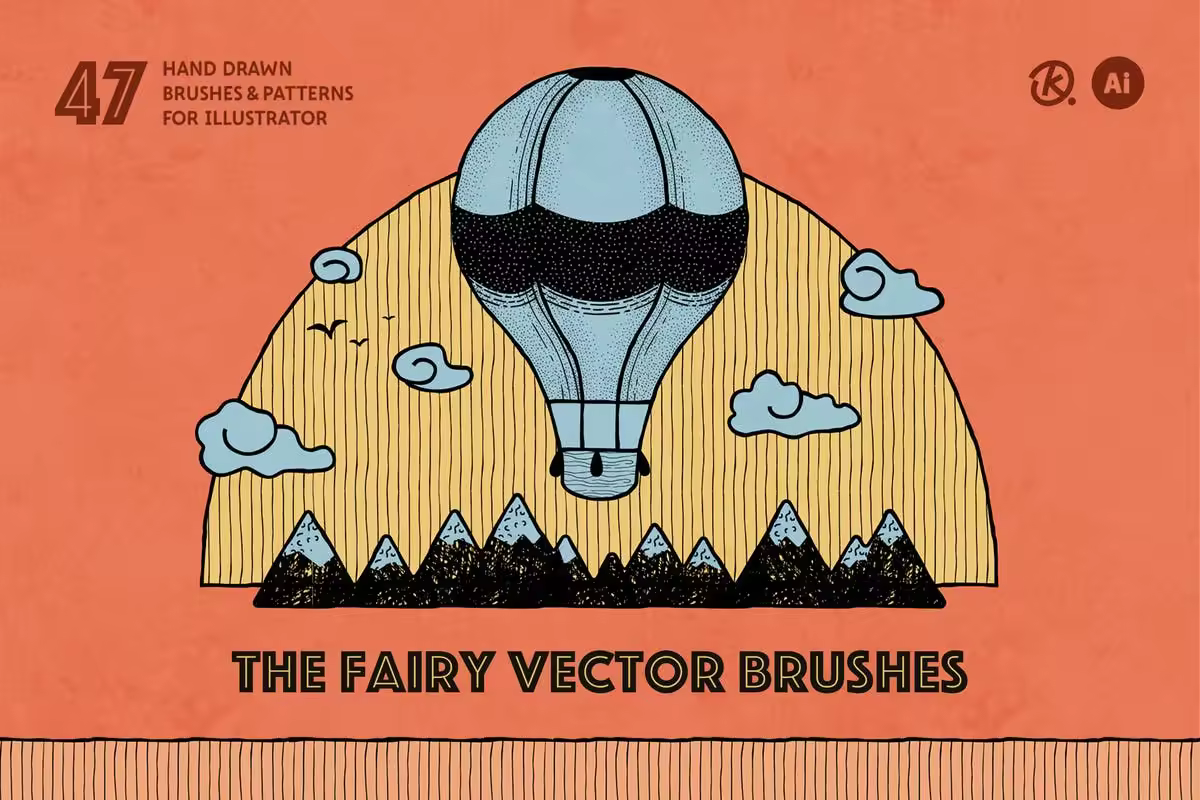 47款手绘画笔&图案AI笔刷合集 The Fairy Vector Brushes