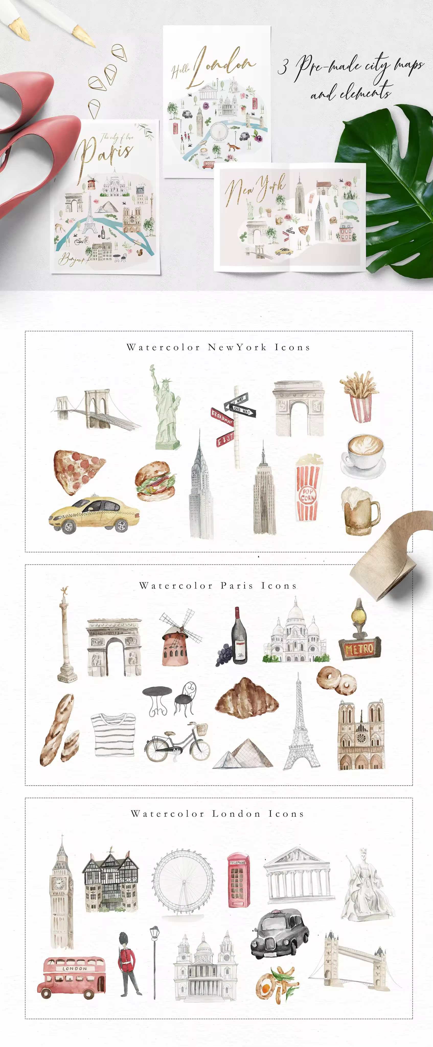 水彩手绘简易地图插画素材 Map Creator 手绘插画 4.3k+ OHM。 这组合集有300多个地图元素,它非常适合为您的客户定制设计或DIY自己的东西!素材已保存为PNG格式,PNG文件可以用大多数图形编辑软件打开。