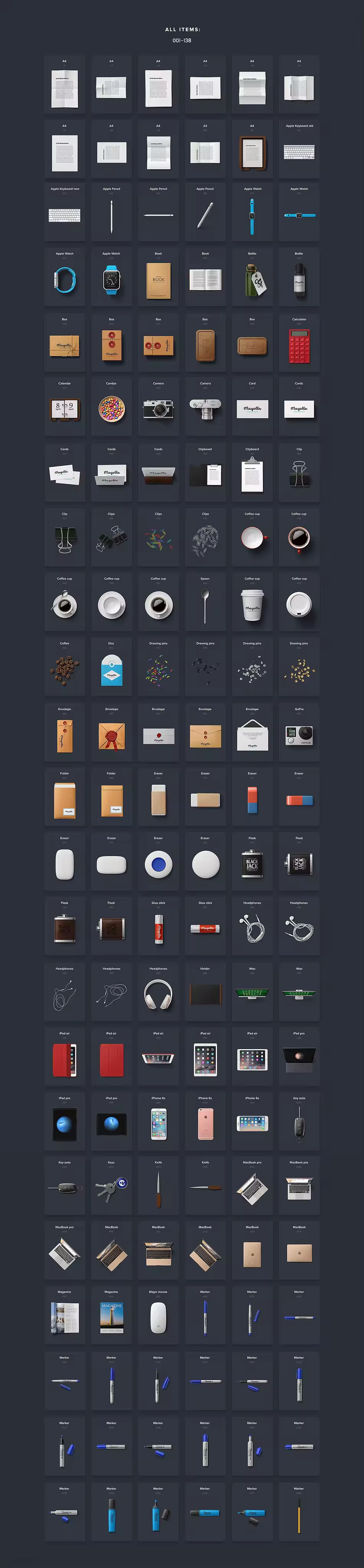 - 样机 Mockups. 使用智能对象快速导入你的个人设计即可快速生成你需要的设计。