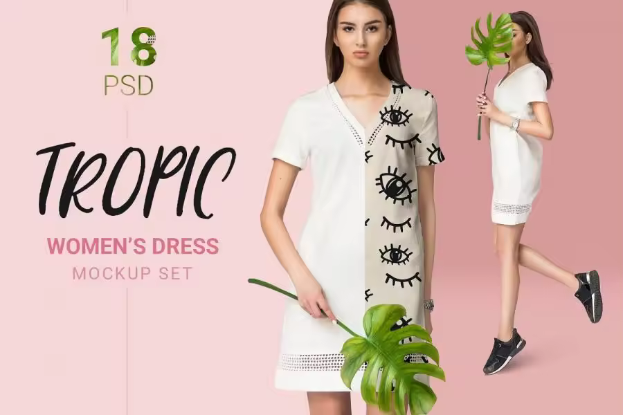 一组时尚简约的女性服装样机套装,18个精心准备的PSD文件。像任何女孩一样,对时尚的外观和有光泽的杂志摄影的专业性着迷。这是美学家和设计师的真正灵感。