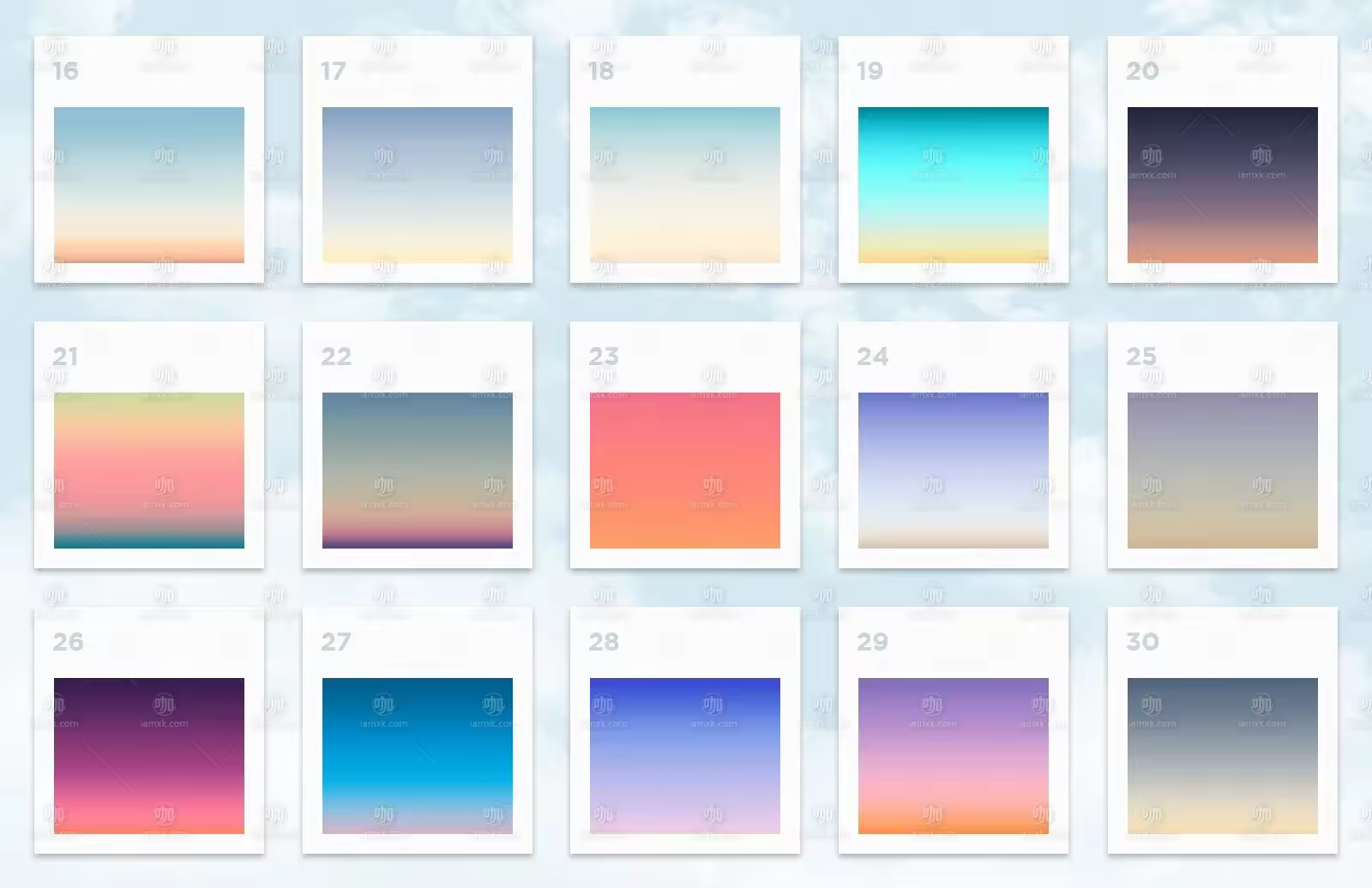 30款天空渐变色配色预设 30 Sky Gradients for Photoshop