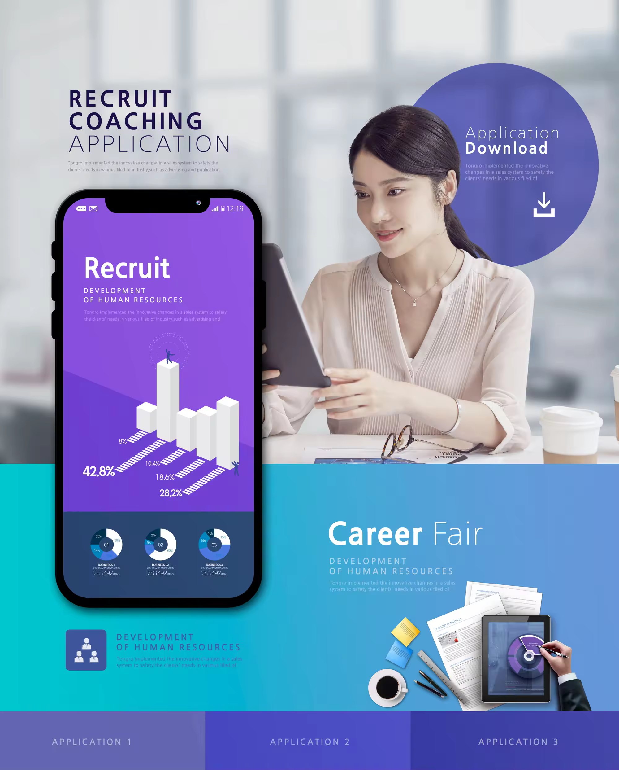 为大家带来一款企业市场互联网招聘海报设计PSD韩国素材,非常适合招聘网站、人才市场、人力资源等企业使用。