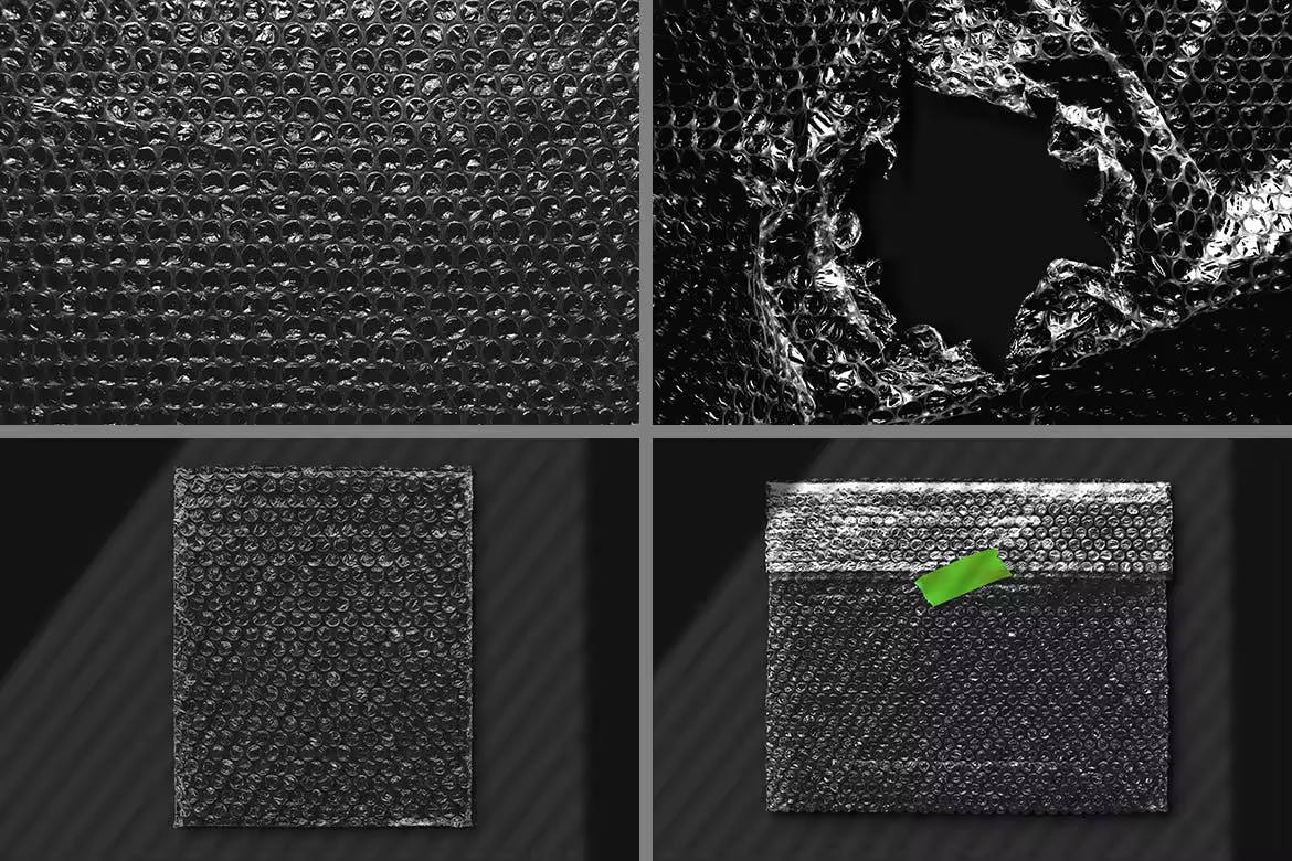 气泡薄膜包装设计效果图样机 Bubble Wrap Mockup 包装样机 15.6k+ ZZH 特点: 5个psd文件 高分辨率。3000x2000px,300dpi 通过智能对象轻松快速地进行编辑 整理好的图层和文件夹 可变的背景