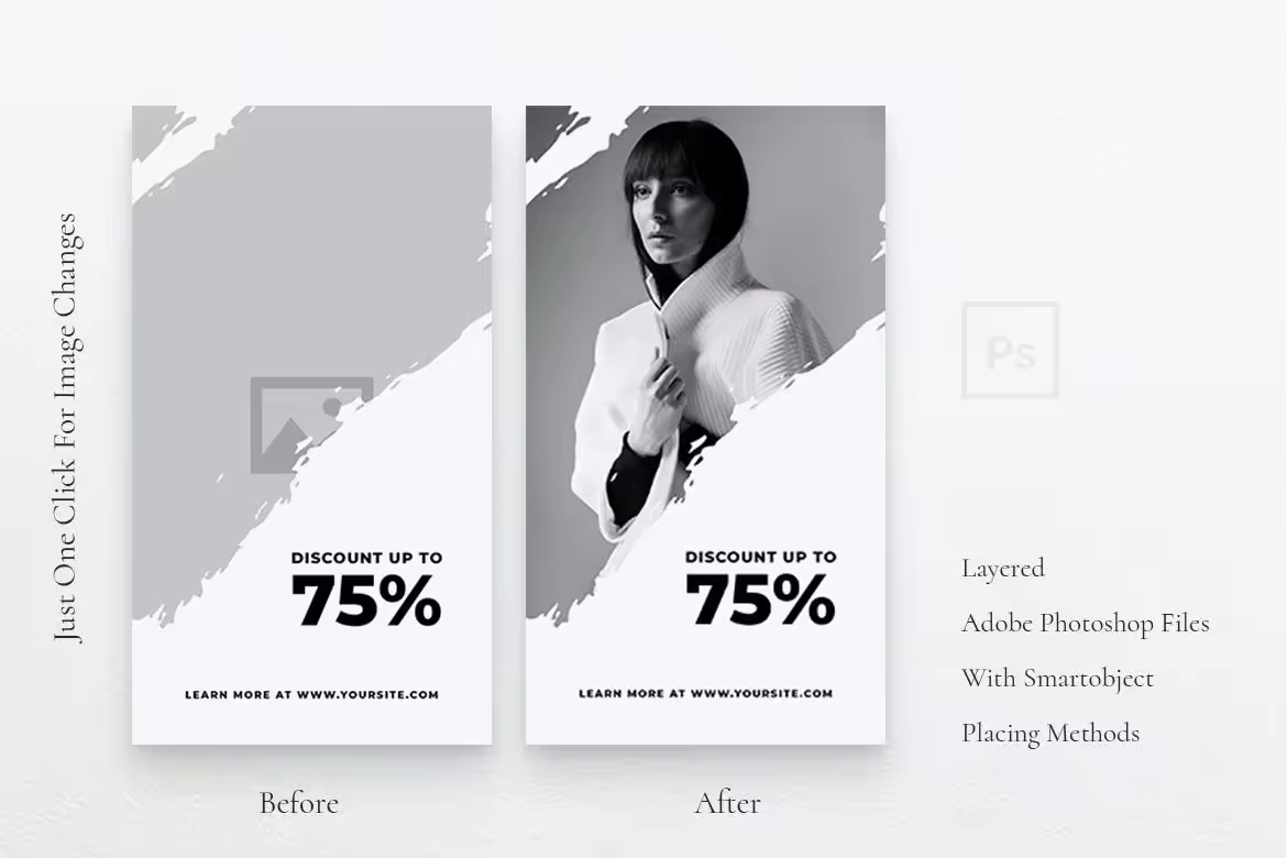 PSD文件易于调整。只需将图像与智能对象一起使用,并使用所需的文本进行自定义即可。
