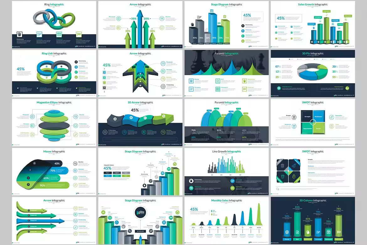 今天为大家分享的是,15000+极简、灵活、可扩展性的多用途商业化PPT模板,有80个幻灯片模板,每个模板约189张幻灯片,150个矢量图标,手工制作的数据图表,完全可编辑,enjoy!
