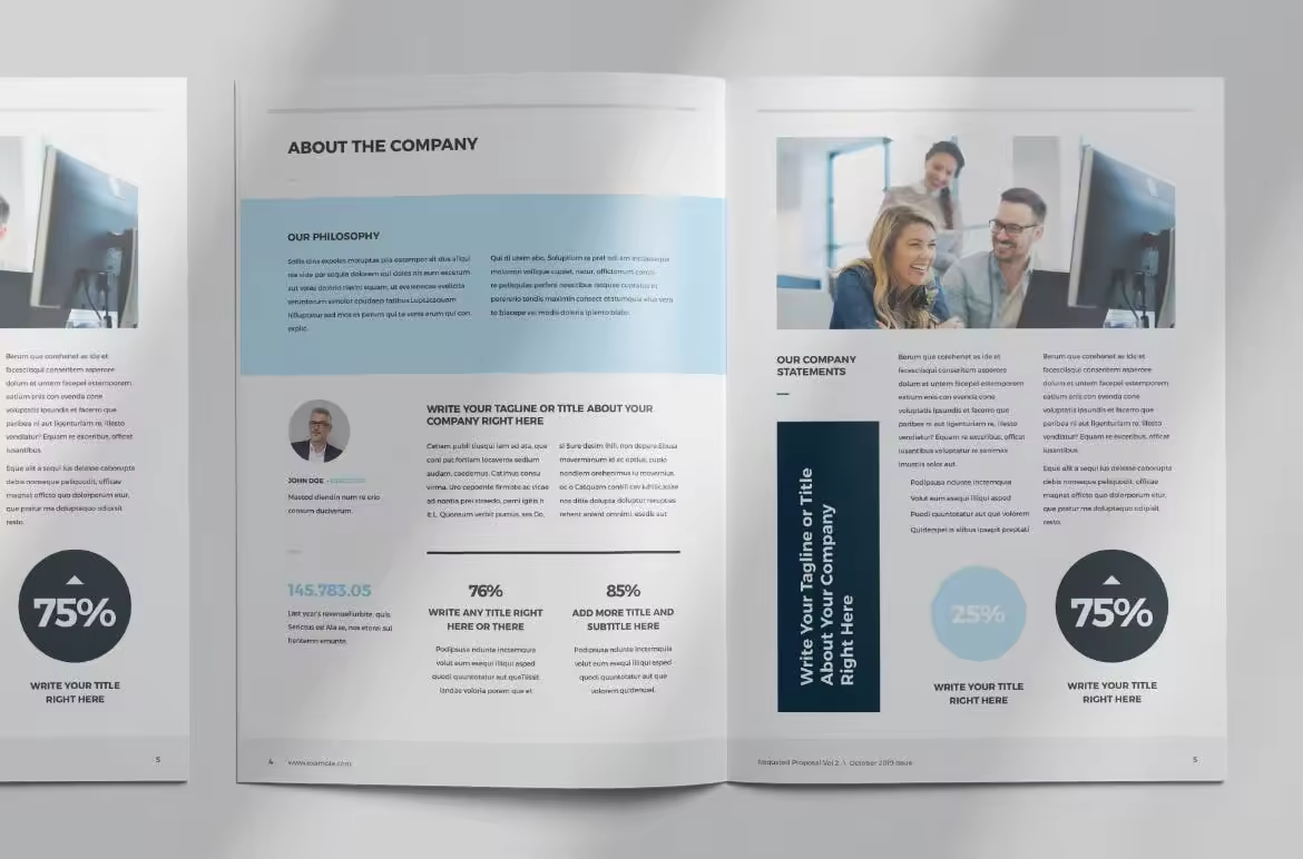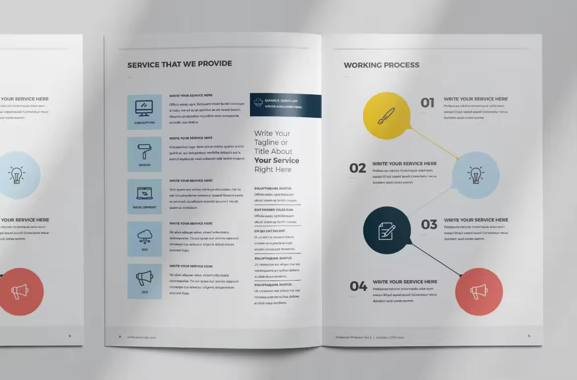 在Adobe InDesign中创建的针对创意企业的专业咨询公司项目规划书/项目建议书模板,该模板是完全可编辑的,以适合您品牌的颜色和公司字体。