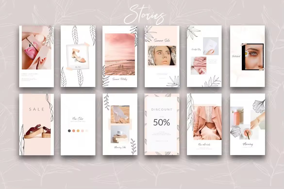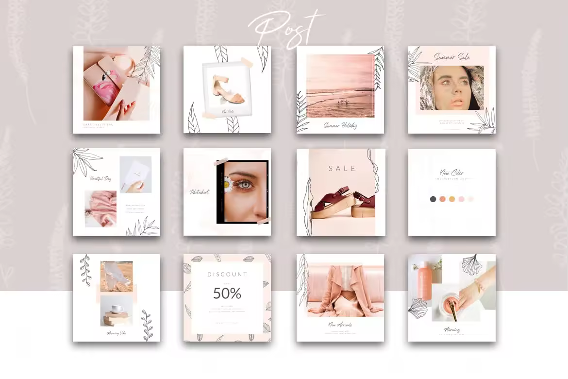 Instagram社交网站简约手绘图案设计素材包 Instagram Monica Social Media Pack 社交媒体 2.6k+ Eva_Lee 特征: 9个 Instagram帖子1200×1200像素 9 个Instagram故事1080×1920像素 可调整大小的可编辑颜色和图像 包含字体链接 易于编辑 智能对象 有组织的图层 注意:照片不包含在包装中。帮助文件中提供了下载字体的链接。
