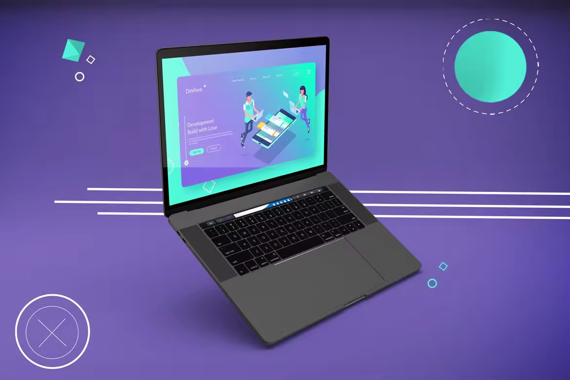 抽象背景Macbook Pro笔记本电脑样机模板v2 Abstract Macbook Pro Mockup V.2