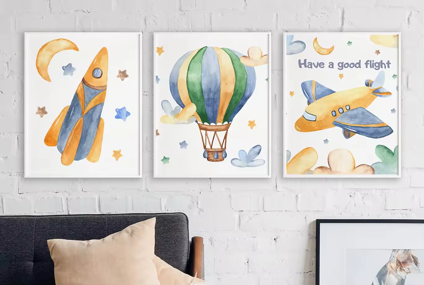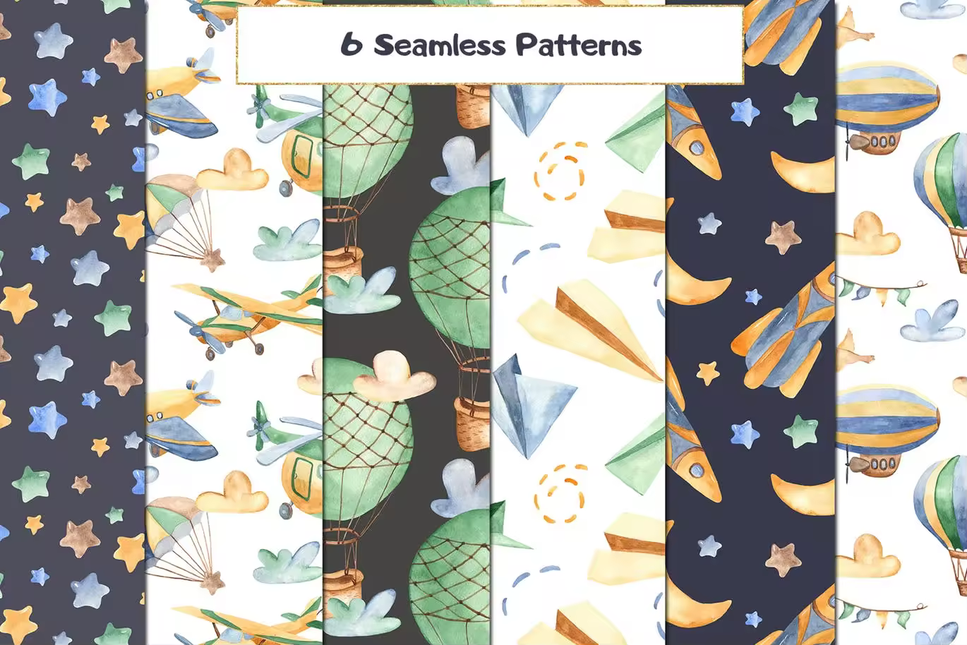 卡通水彩风格空运交通工具PNG插图素材 Watercolor Air Transport