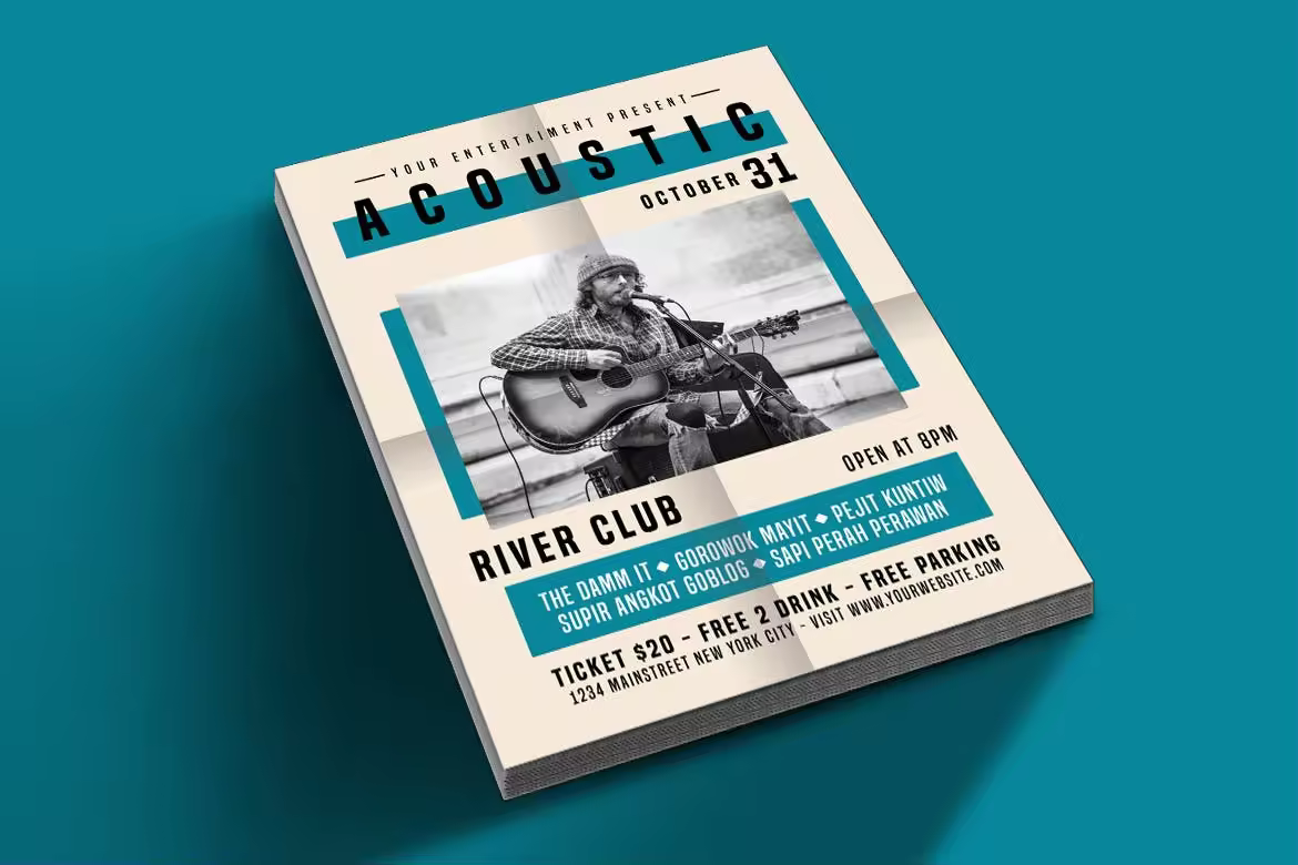 音乐表演活动传单设计模板 Acoustic Show Flyer 海报传单 5.9k+ ZZH 音乐表演活动传单设计模板 2个PSD文件,兼容版本Photoshop CS5+ 2种配色方案 尺寸:8.27×11.69英寸,预留出血位 分辨率:300 DPI/CMYK 可编辑的字体/文字 易于更改颜色 组织良好的图层