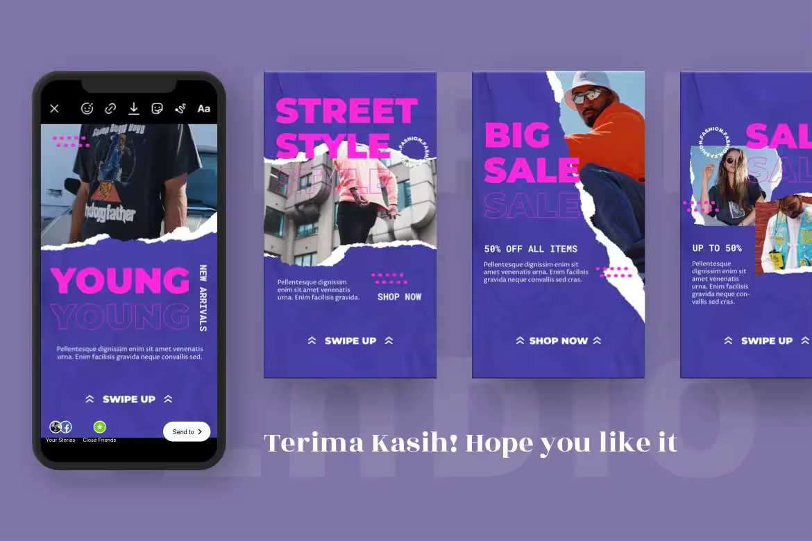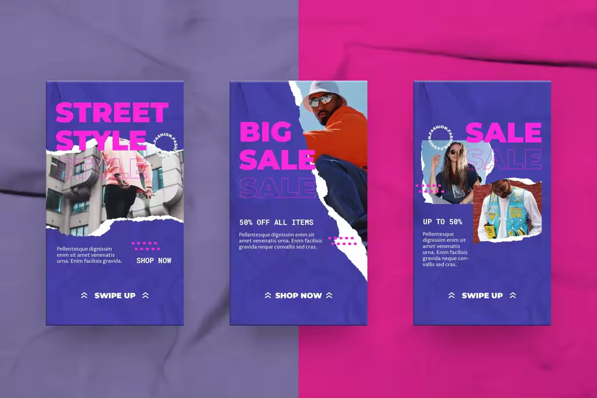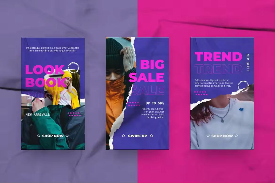 撕纸艺术风格时装秀促销社交媒体Banner设计模板旨在让您轻松创建所有社交媒体故事/帖子,使您有更多时间使自己最擅长的事物看起来更好!请确保在社交媒体上使用一致,突出的图形,以便您的广告系列容易被其他人识别!因此,准备好利用这些惊人的收藏吧!