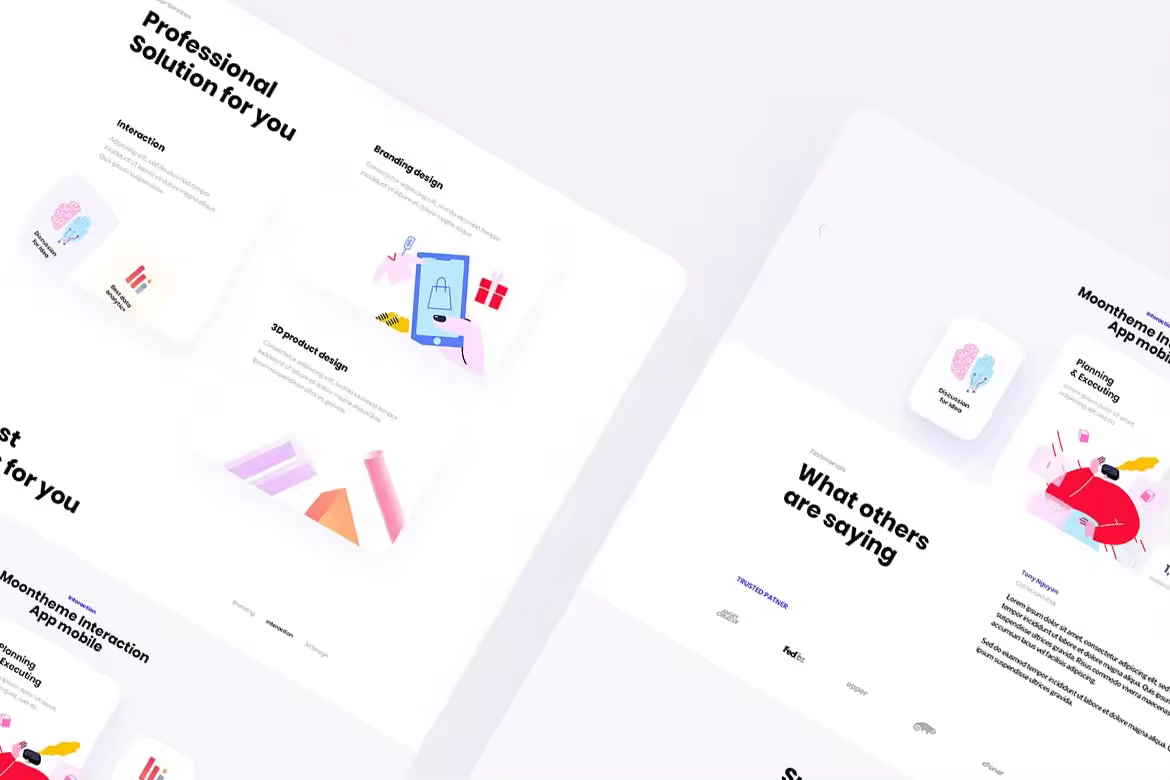 现代,简洁,多功能且专业的创意机构公司着陆页UI设计模板。很棒的配色方案。