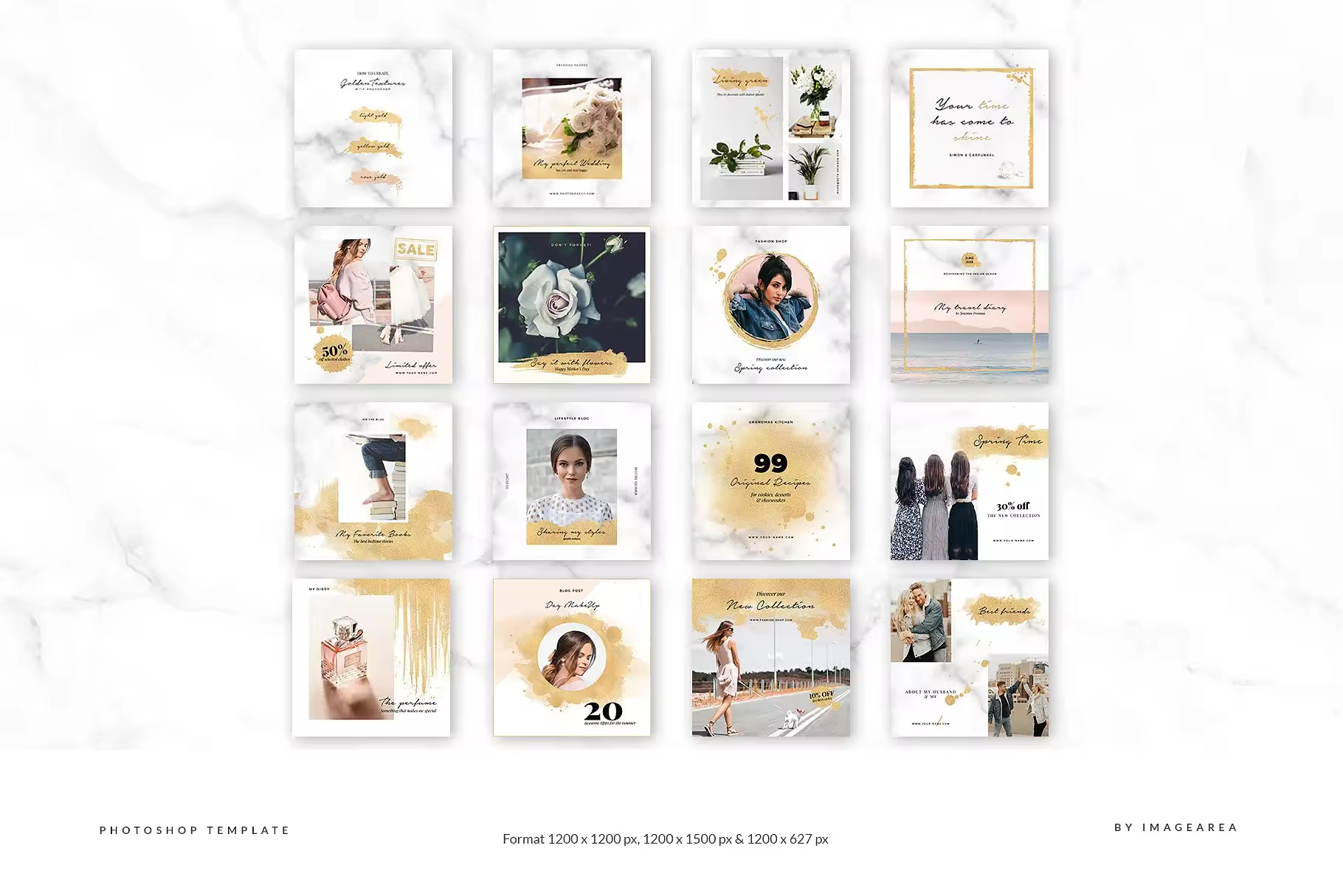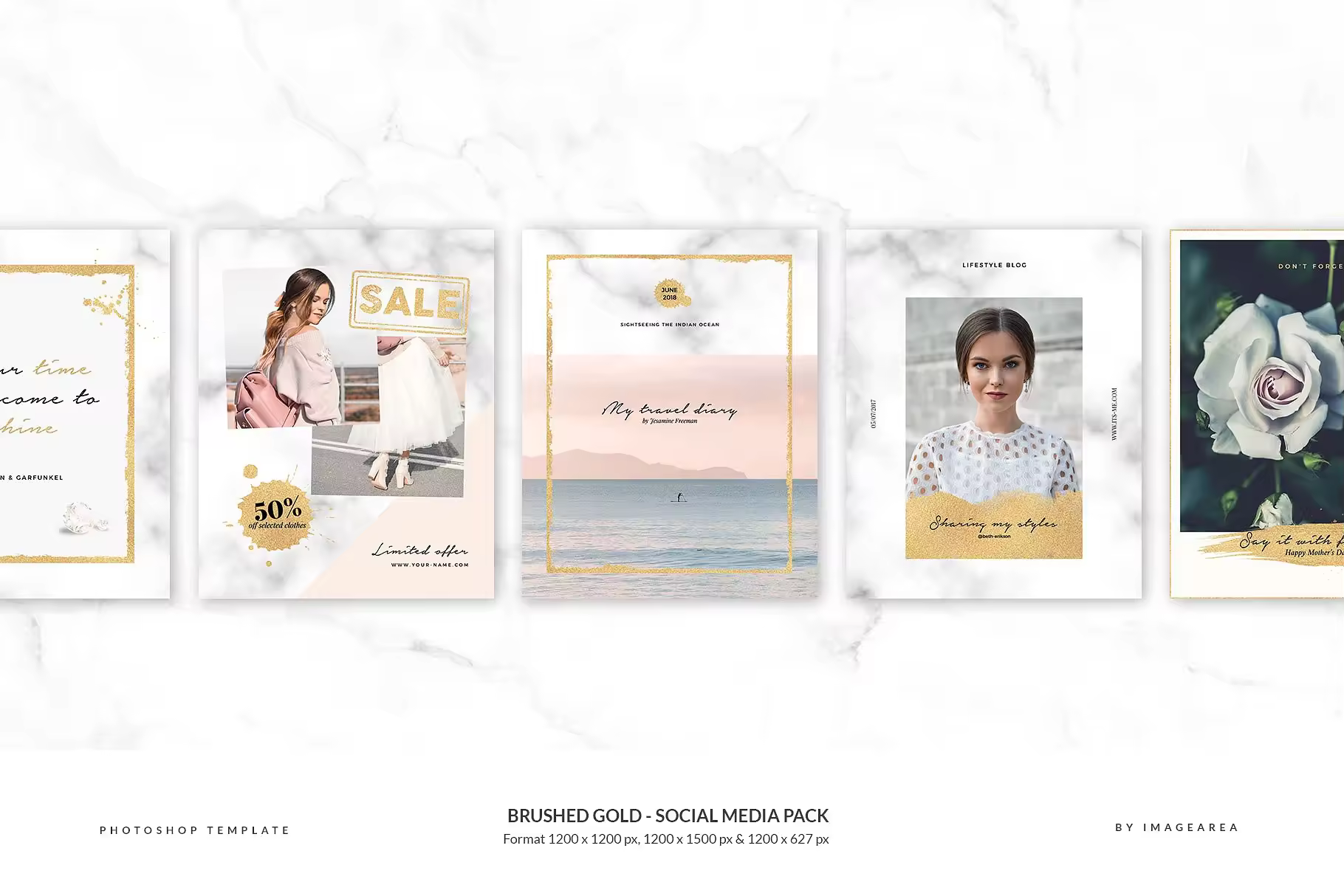 极力推荐:社交媒体贴图素材包 [Banner, 广告, 海报模板,1.75GB] Brushed Gold – Social Media Pack 社交媒体 3.2k+ OHM。 这组多用途社交媒体包可用于你的网站,博客,社交媒体发布。模板包包括广场贴模板,共享链接贴模板,还有16个100%可编辑的矢量设计。