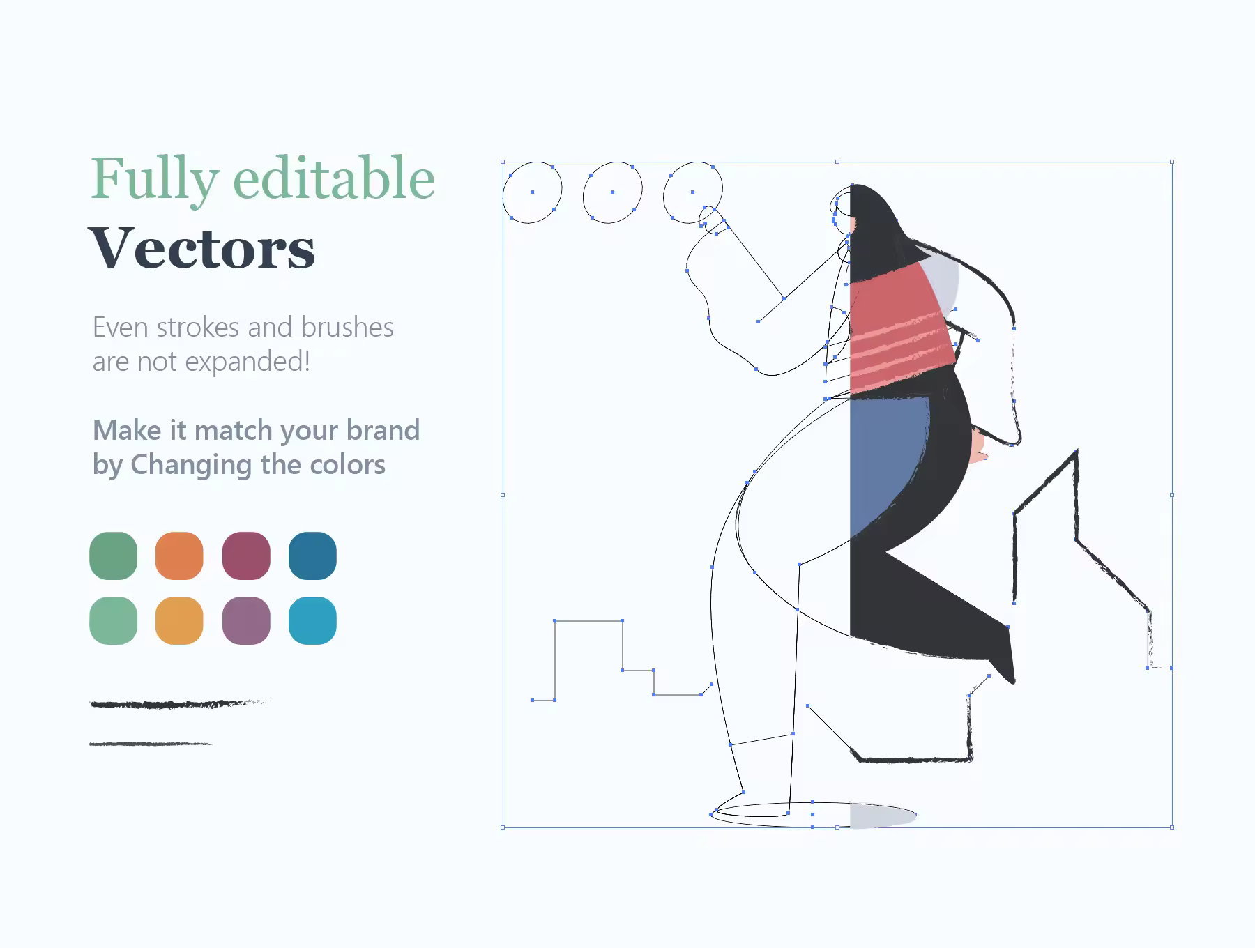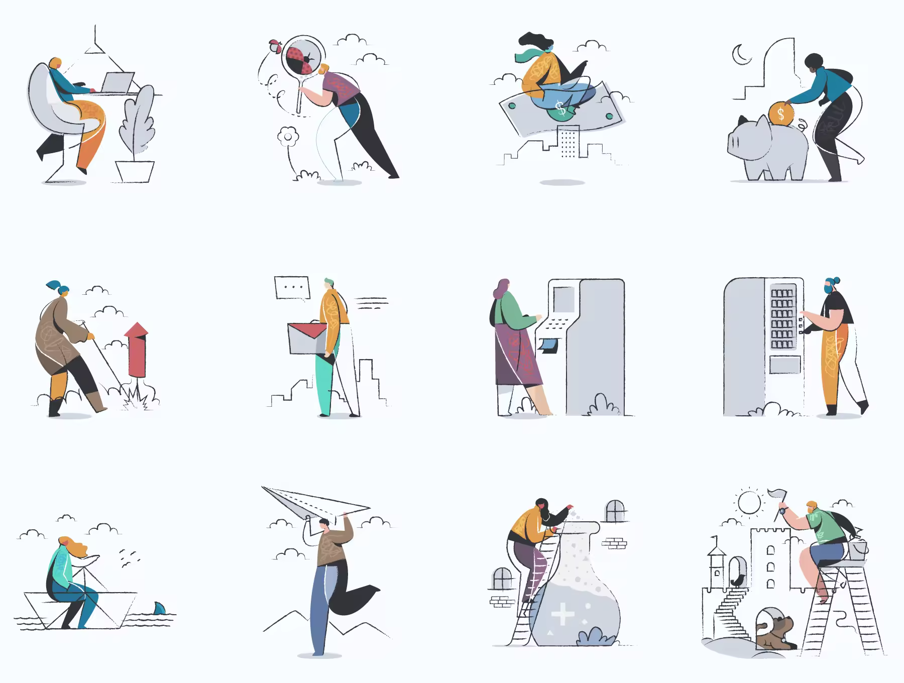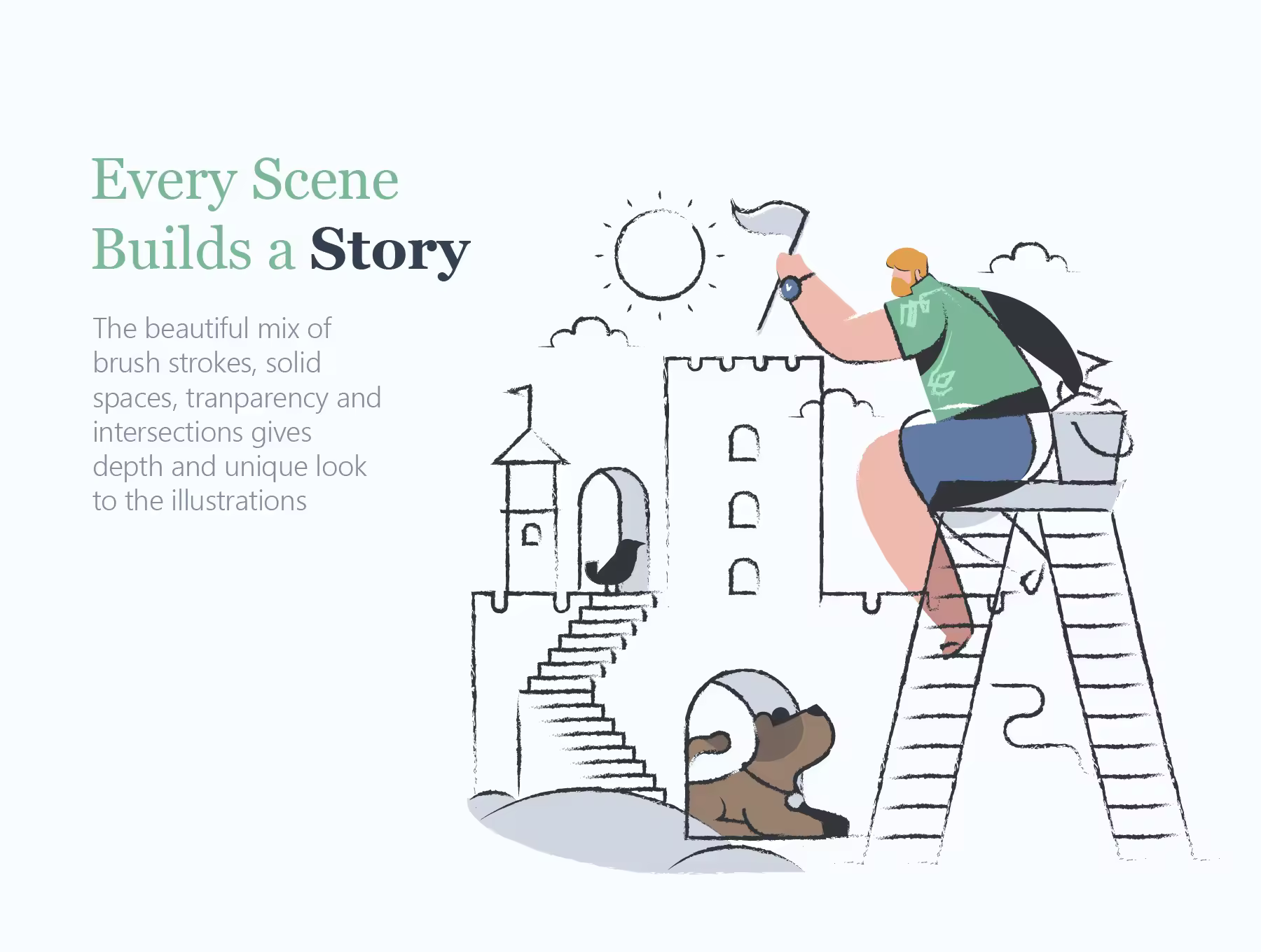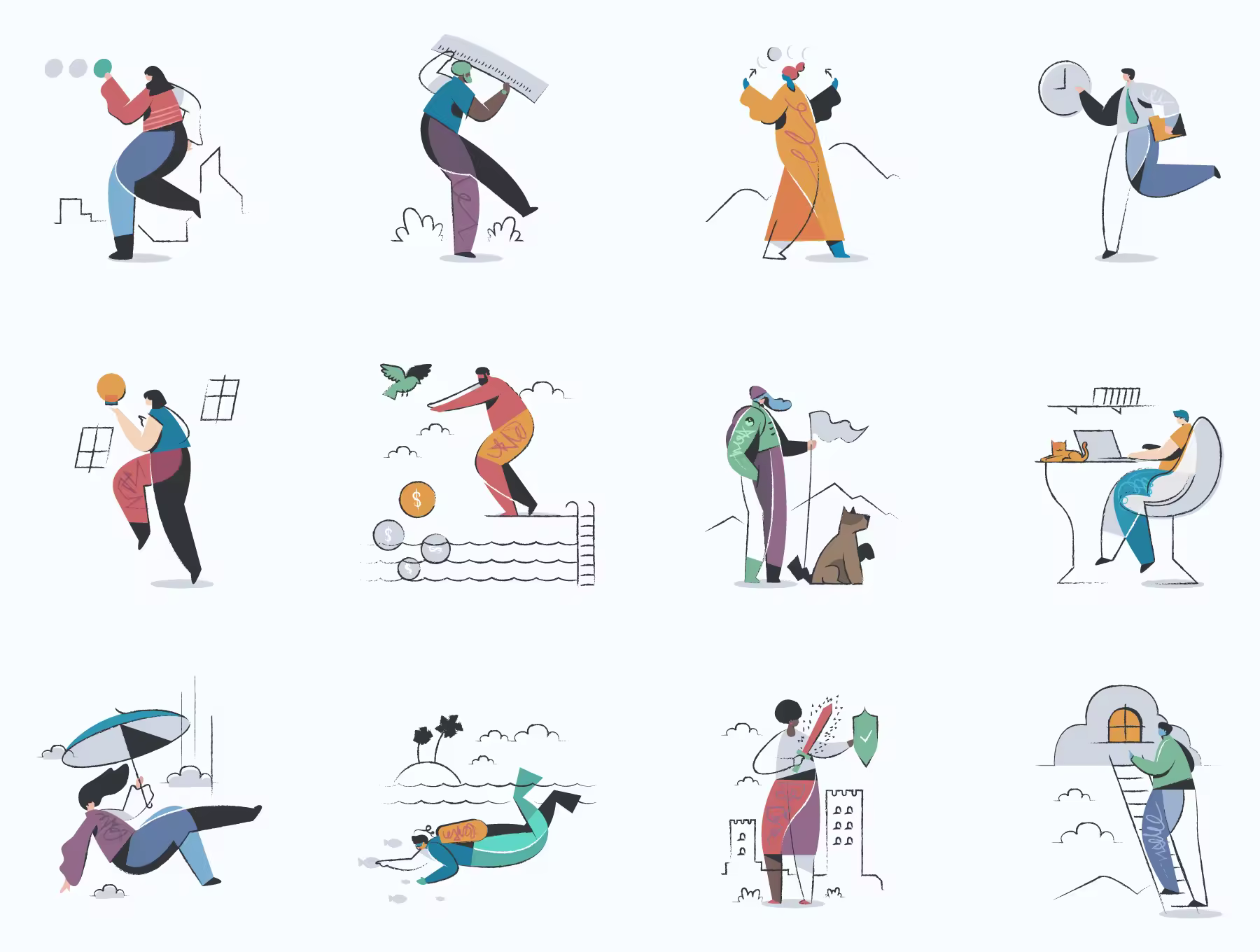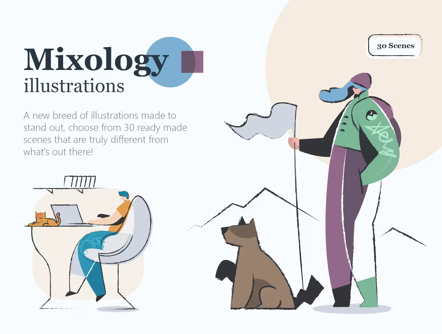 一系列新颖的矢量插画,将平面样式与笔触和透明相交相结合,产生了您从未见过的完全独特的样式。