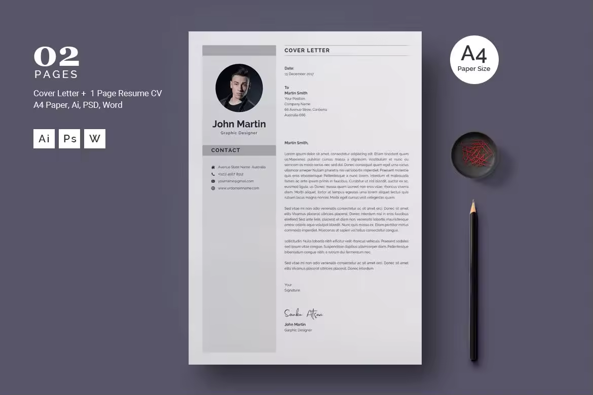 现代简约风个人电子简历模板 Modern Resume / CV Template 简历模板 3.4k+ ZZH 现代简约风个人电子简历模板: 1页简历和求职信模板 A4纸张尺寸 与Adobe Photoshop,Adobe Illustrator,Word兼容 分层和组织良好,可编辑的颜色/文字 100%可扩展的所有文件 300DPI/ CMYK 使用免费字体