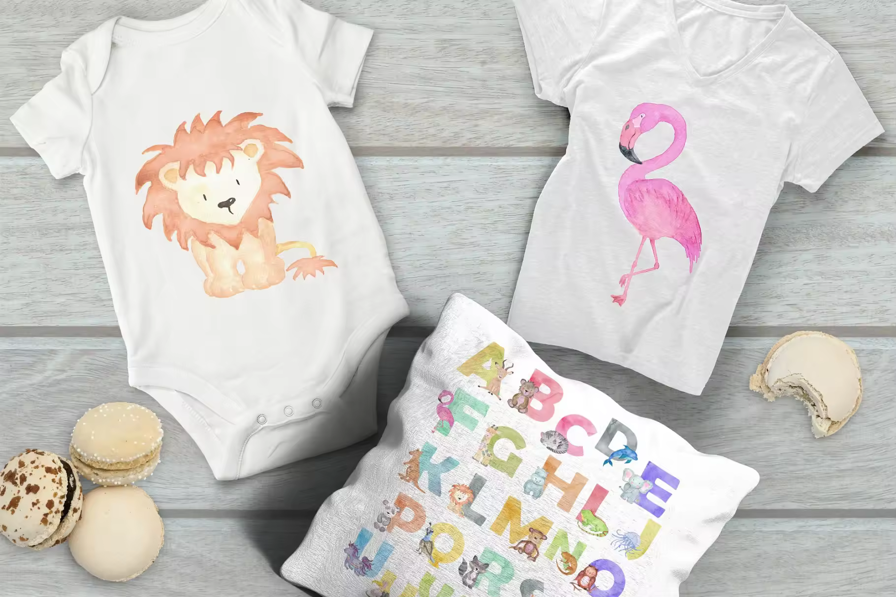 字母、可爱动物水彩图案&纹理 Alphabet Watercolor Animals Kit