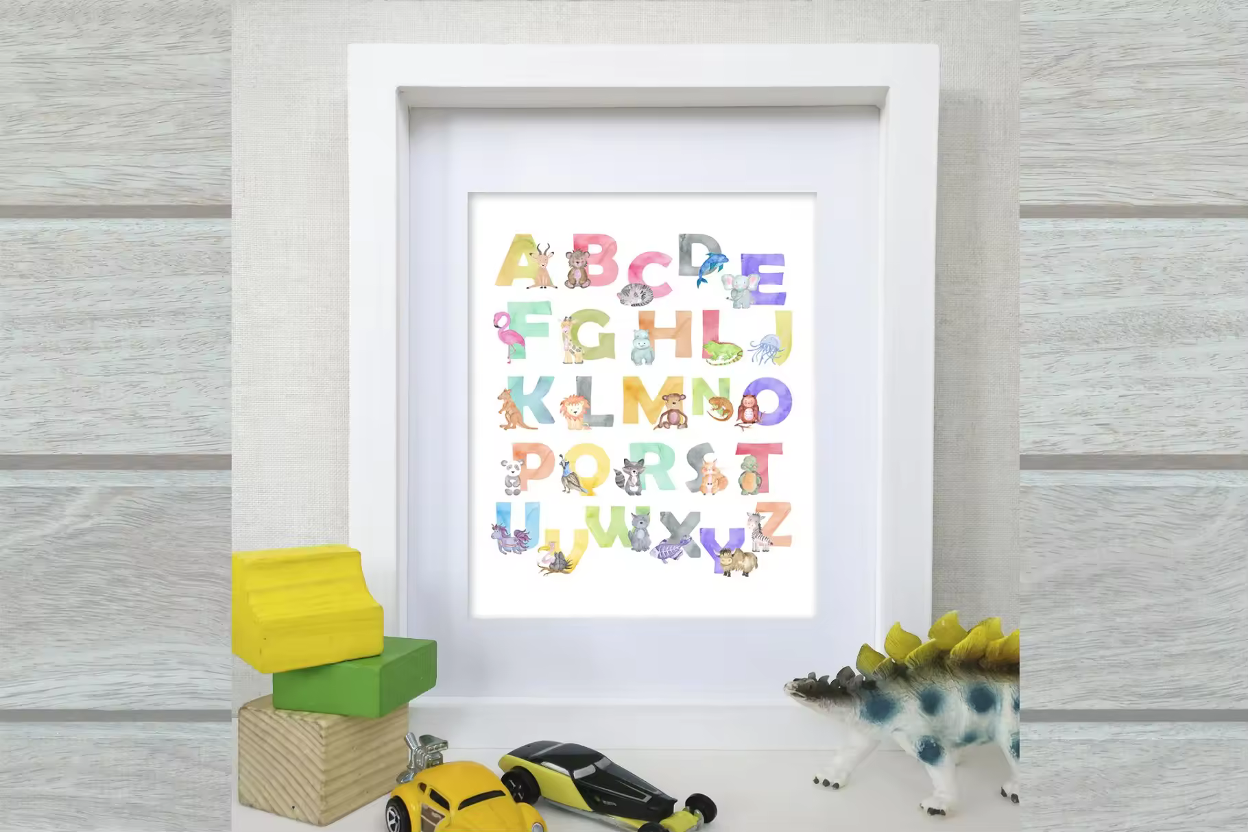这个剪贴板包含超过72个图形元素。这个系列包括一个16×20英寸(Jpeg和Png格式)的字母,26个带有动物的字母,26个可爱的水彩动物,26个没有动物的字母,你还将获得额外的水彩元素(太阳、彩虹、七彩六角形、气球和星星)