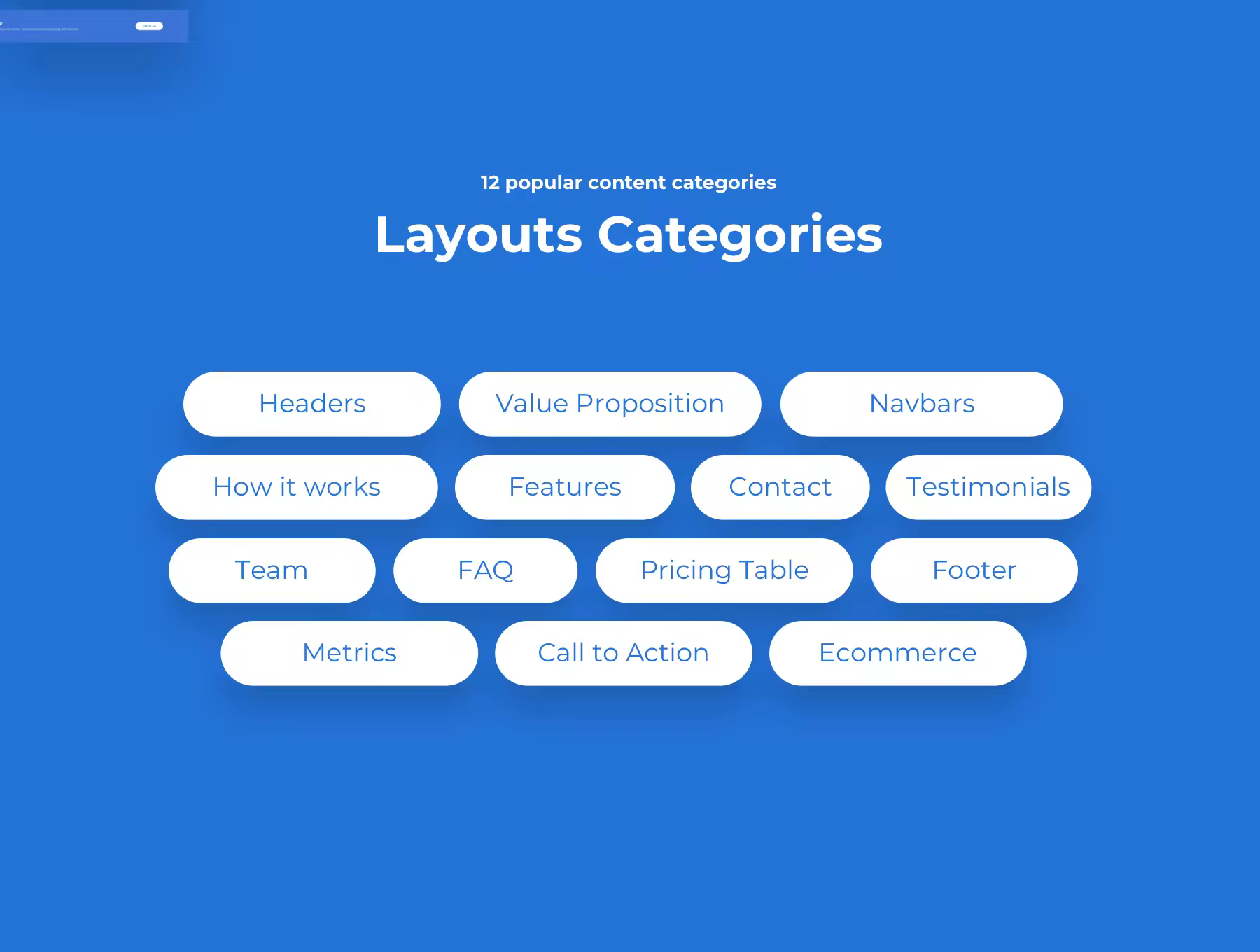 这是Web设计项目的大量布局,组件和UI元素的集合。精心制作的所有这些元素完美地融合在一起,使您能够以出色的质量更快地创建出色的设计。所有布局都非常易于组合和自定义,此外,您还可以使用此套件中内置的数百个随时可用的组件来创建自己的布局。此Web UI套件包含100个即用型布局部分,分为11个受欢迎的内容类别,这些类别由11个组件类别组成。